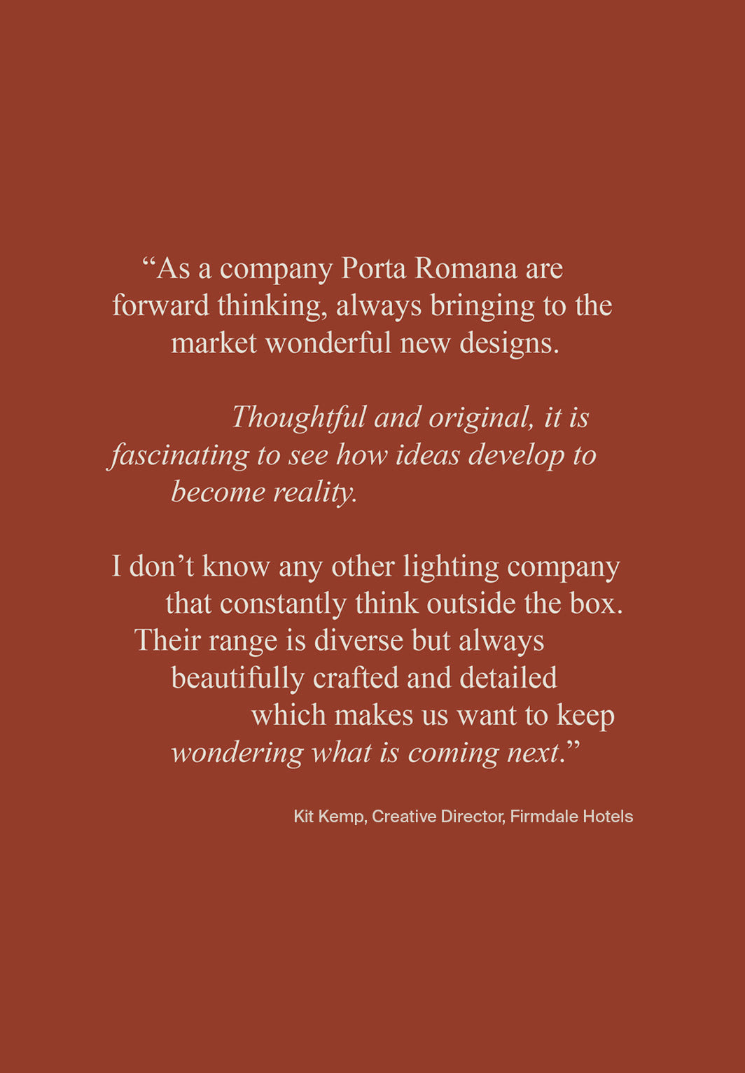 Throughout the hotel, the Rockin' Robin appears as table lamps, ceiling pendants and wall lights, each selected to sit harmoniously within the room’s distinctive textiles and handcrafted furniture. Their gentle glow and sculptural form help define the layering and storytelling that Kit Kemp is celebrated for.