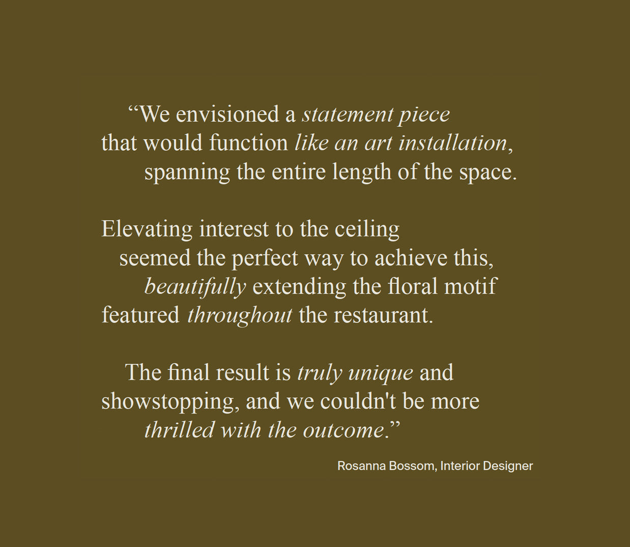 At Porta Romana we’re delighted to have played a part in Rosanna and Tord’s vision to create an immersive and lasting experience for the many diners that pass through Julie’s doors. Get in touch with our hospitality team to see how we can support your next project.