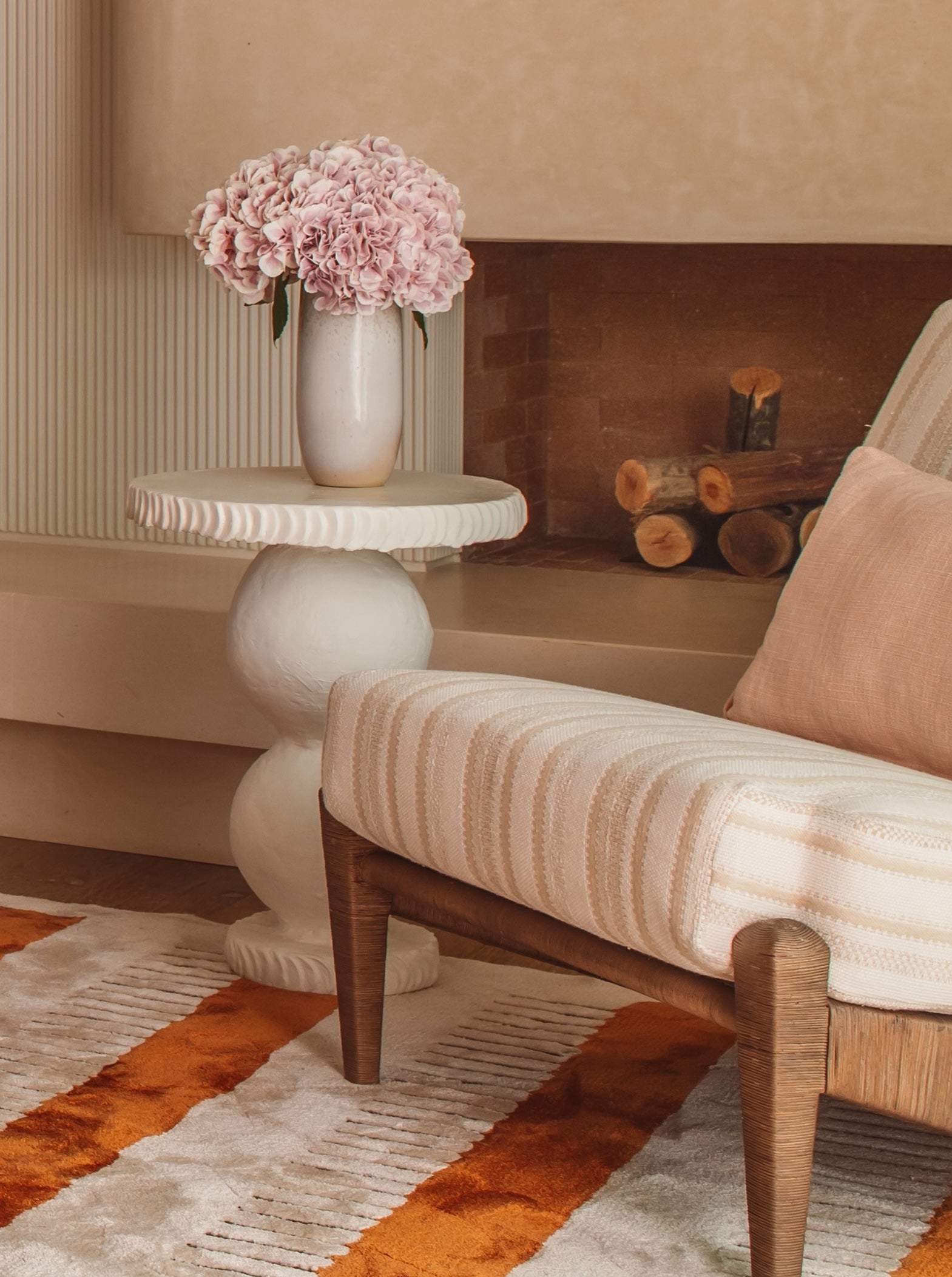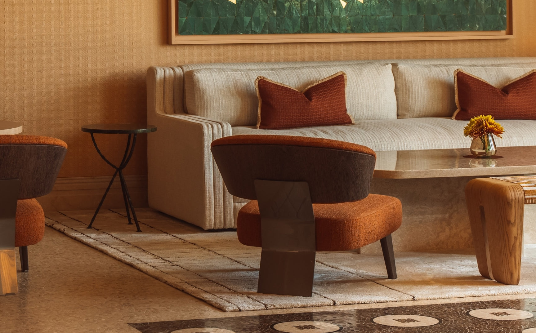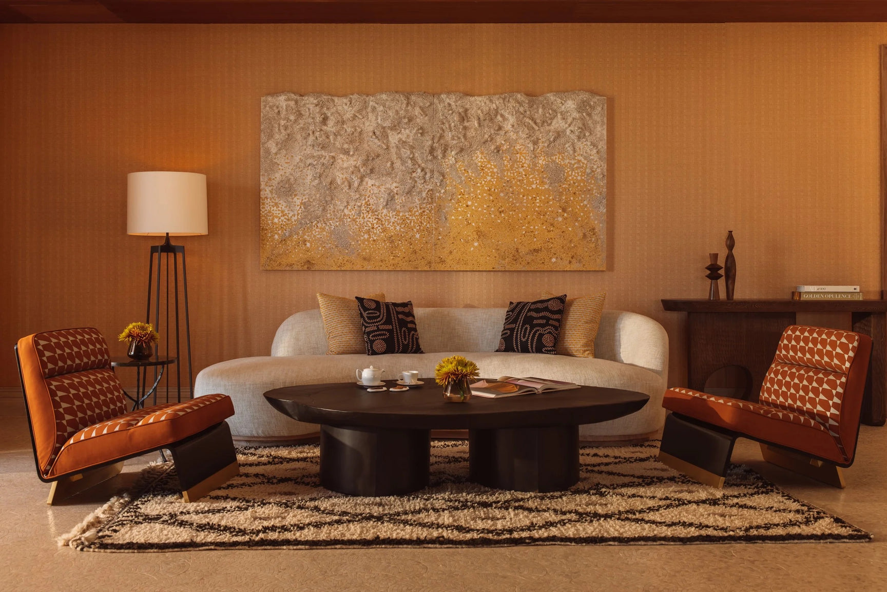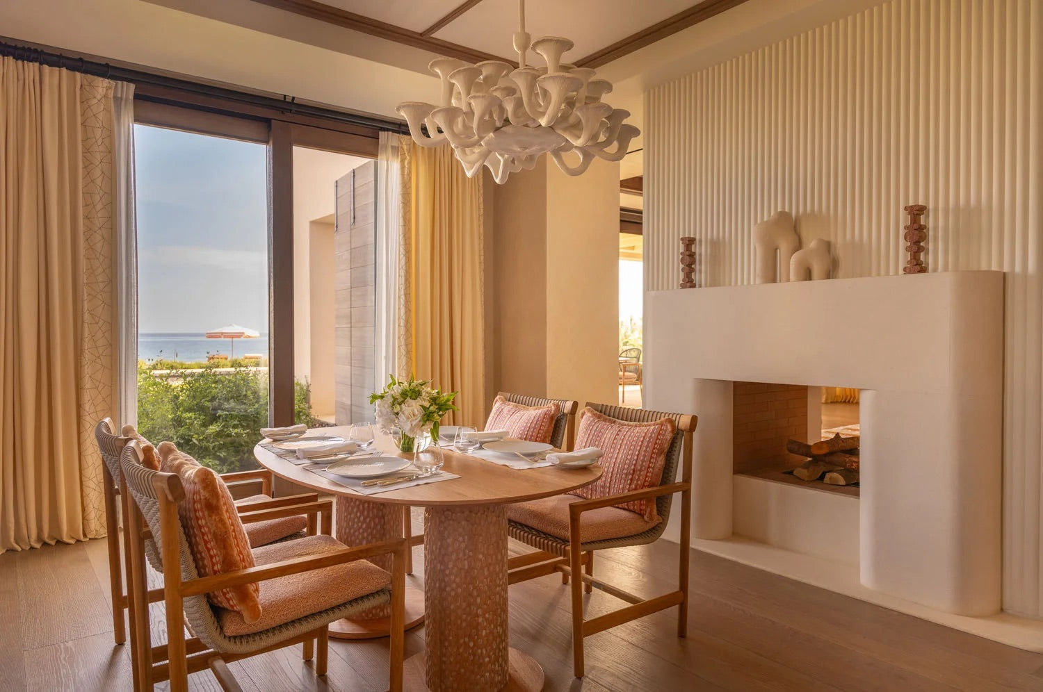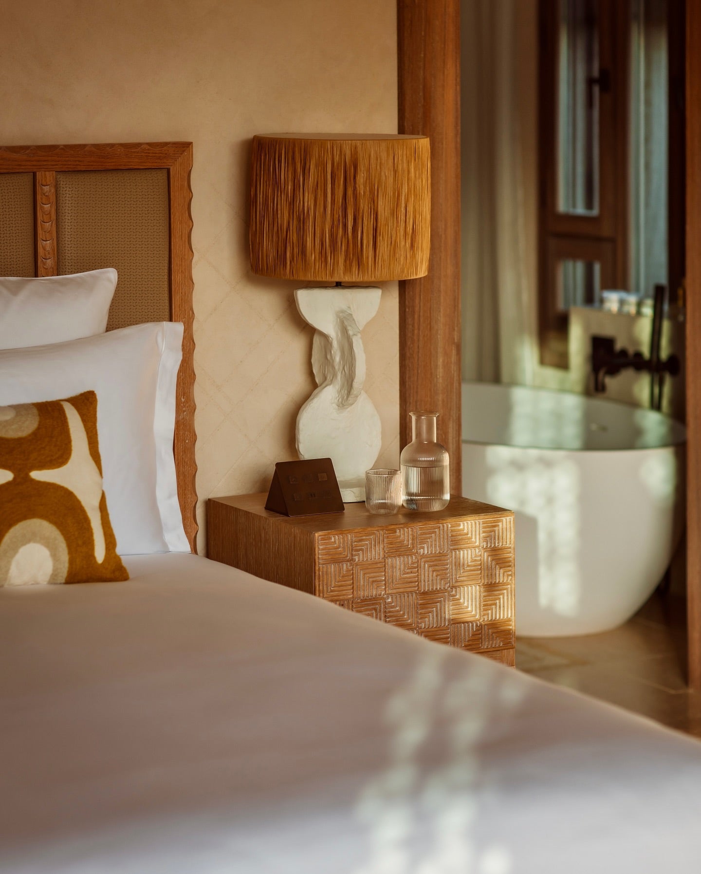 The specification includes the Moons lamp, Barbara lamp, Forest lamp, Knot lamp, Bronte wall light, and multiple bespoke-scaled designs such as the Othello lamp, Clam Shell mirror, and Twig mirror. Statement pieces — including the Mushroom chandelier, Giacometti cocktail table, Selina side table, Marina console, and Jolly mirror — anchor key moments within the interiors, adding depth and texture to the design narrative. Enhancing the guest experience and reinforcing the resort’s identity as a sanctuary of artistry and design.